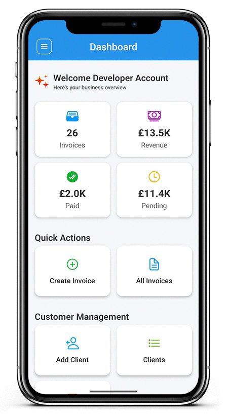 Preview the final layout, download the invoice as a PDF. Send the invoice directly to your client’s email with a single tap.
